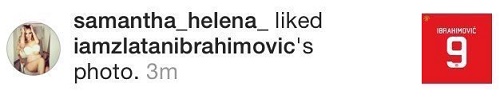 Ibrahimovic had posted an image of his name above a number nine on Instagram after the switch was announced by the club and Samantha has since 'liked' the post.